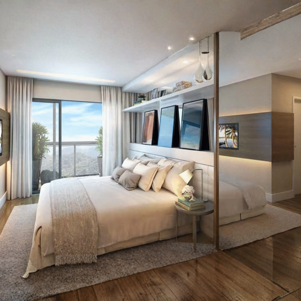 Apartamentos modernos, com plantas inteligentes de 86 a 93m², em versões com 2 quartos com suíte ou double suítes, projetados para quem busca um estilo de vida prático, sofisticado e conectado à natureza.